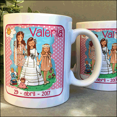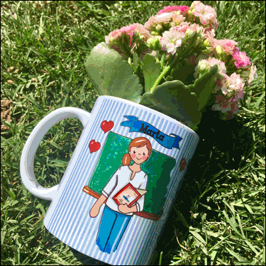 Puedes aplicar cualquiera de mis dibujos (comunión, bautizo, regalo a profesores, etc) a tus tazas.